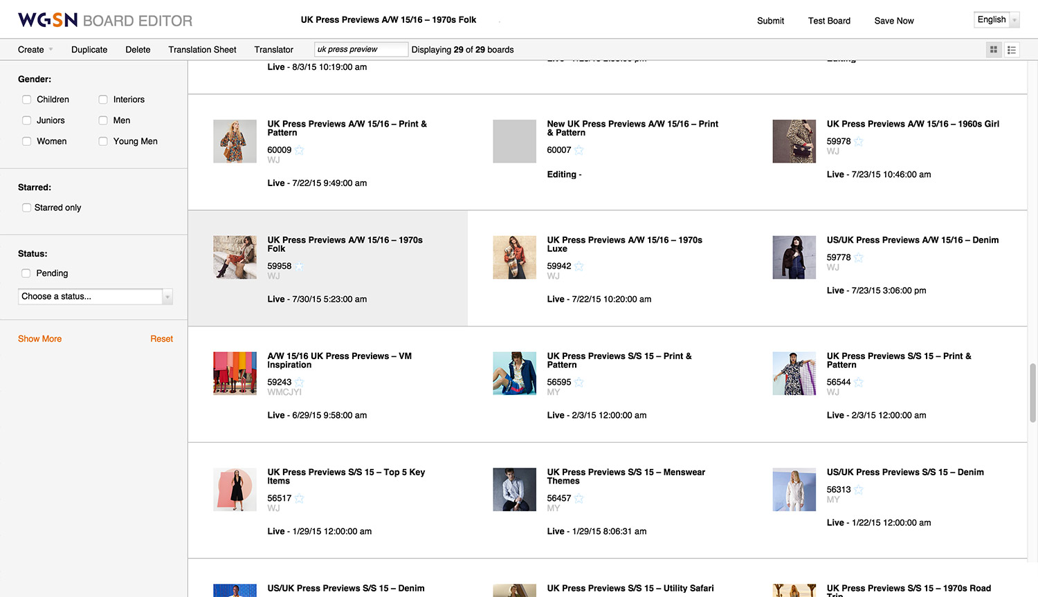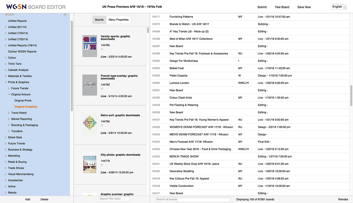 A private content management system for WGSN reports. It allows WGSN Designers and Editors to create reports and organize them into their respective sections of the WGSN Fashion and Lifestyle & Interiors sites.